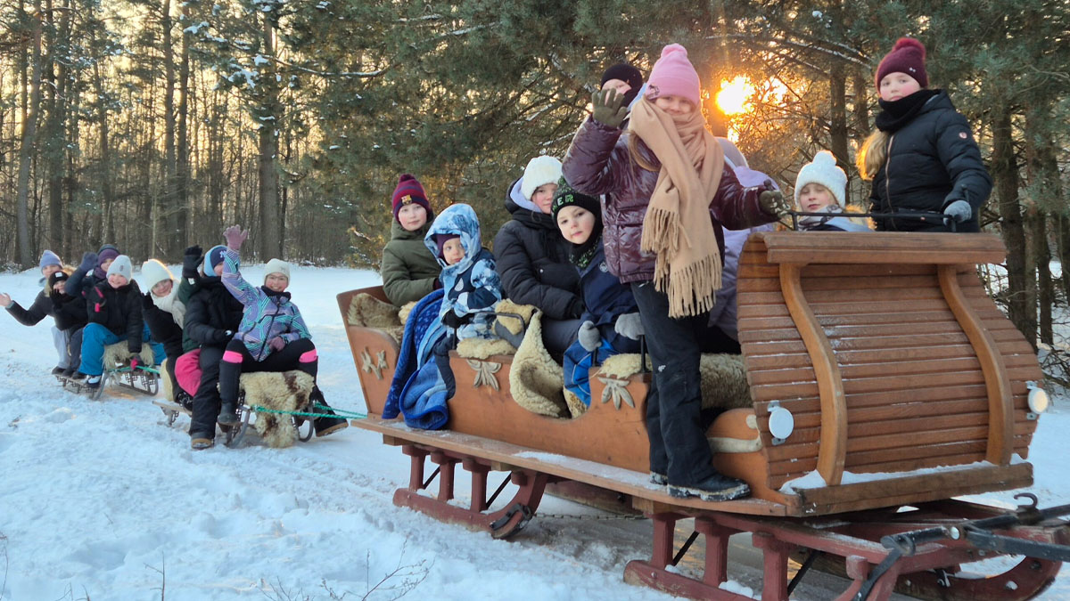 - Przejażdżki wozem ciągniętym przez traktor – atrakcja dla dzieci i dorosłych, latem wozem po okolicy, a zimą w formie kuligu na saniach