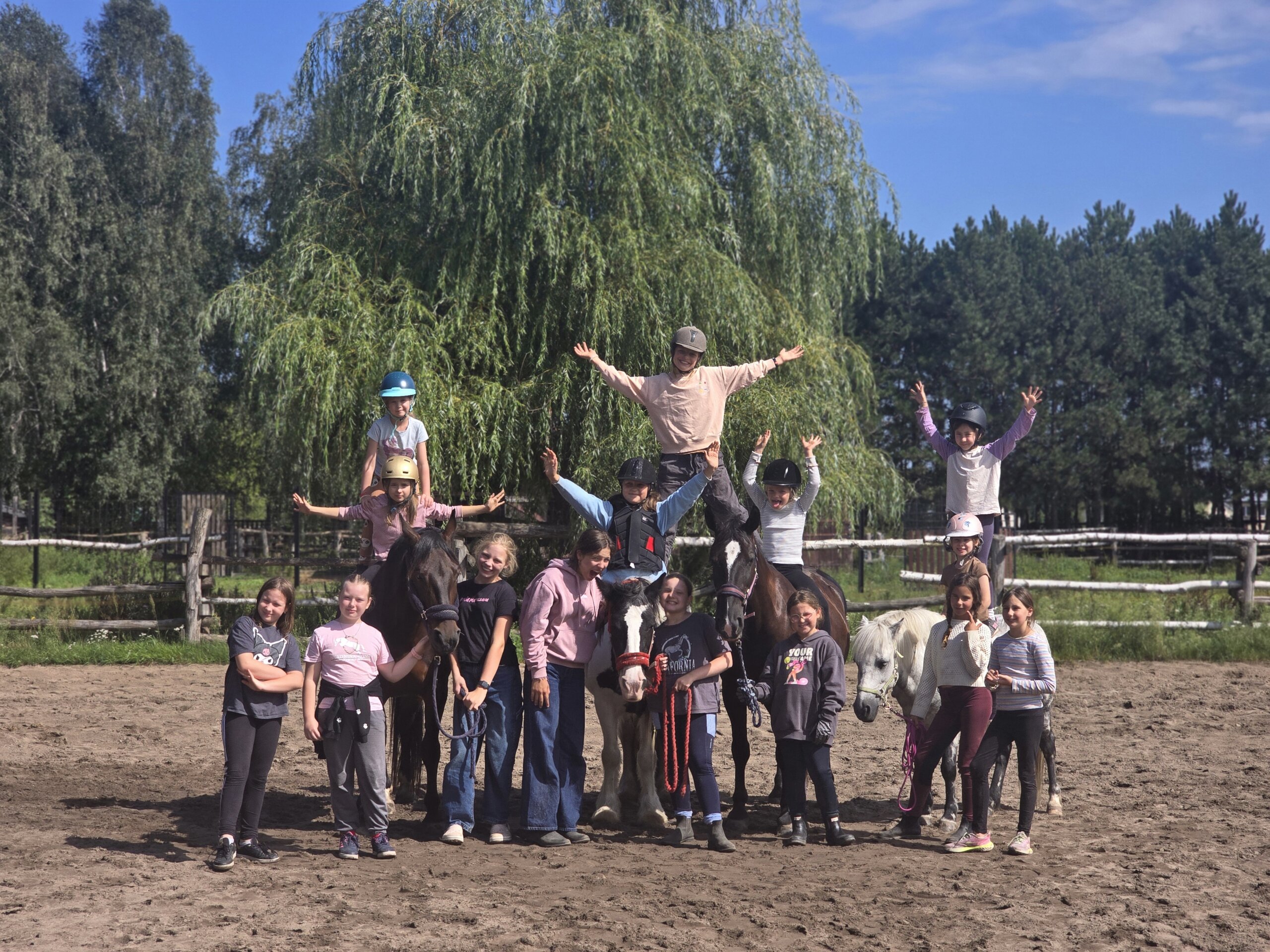 Zapraszamy dzieci i młodzież na półkolonie i kolonie jeździeckie prowadzone w profesjonalnym, dbającym o dobrostan zwierząt ośrodku, z 20-letnim doświadczeniem w pracy z dziećmi i końmi.